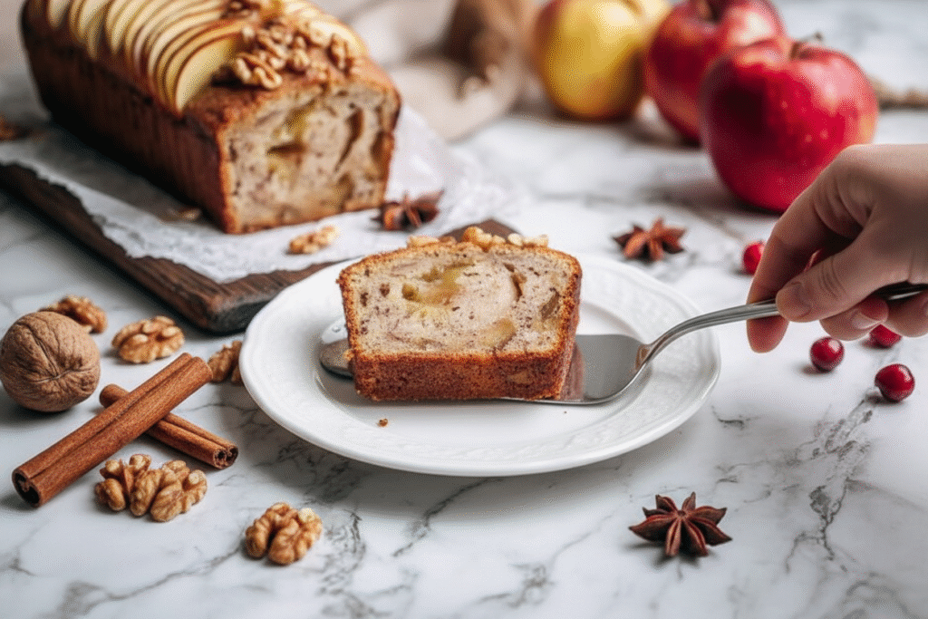 A warm slice is wonderful alone. But let’s make it special. For breakfast, toast a slice. Spread a little cream cheese on top. The tang is perfect with the sweet apples. For dessert, serve it with a scoop of vanilla ice cream. It melts into the bread. Oh my.