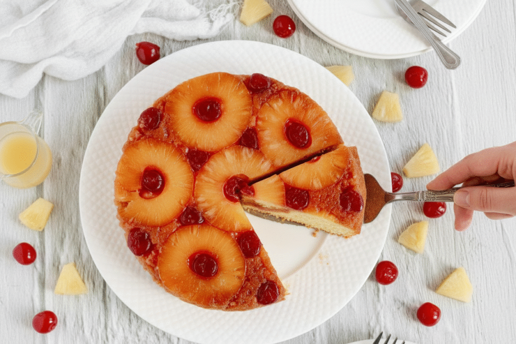 First, the fruit might stick to the pan. Always pat your pineapple rings very dry. Press them firmly into the brown sugar. I remember when my first cake lost its cherry design. It taught me the importance of that pat-dry step.